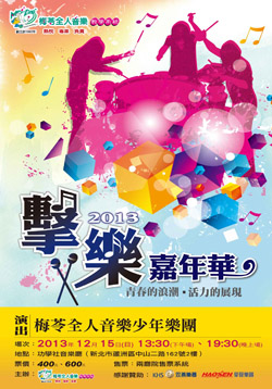 【梅苓盃木琴大賽】創立於民國九十二年,由梅苓全人音樂教學系統舉辦第一屆賽程,歷經九屆的比賽,除了在系統內成為年度重要的活動指標,也吸引了全省許多對愛好木琴獨奏的學子前來參賽。在今年第十屆梅苓盃木琴大賽,初賽將於102年11月17日(日)全省同步舉行,決賽預計於103年1月5日(日),擇定新北市蘆洲KHS音樂廳舉行,今年我們也將擴大邀請全省各地木琴比賽前三名好手,一同來參與競賽,並且讓大家有機會藉由比賽的平台,讓參賽者彼此切磋、互相觀摩及交流,鼓勵並激發參賽者於琴藝技巧上精益求精,期待您的共襄盛舉,讓國內打擊樂-木琴獨奏發展可以更上一層樓…(more)