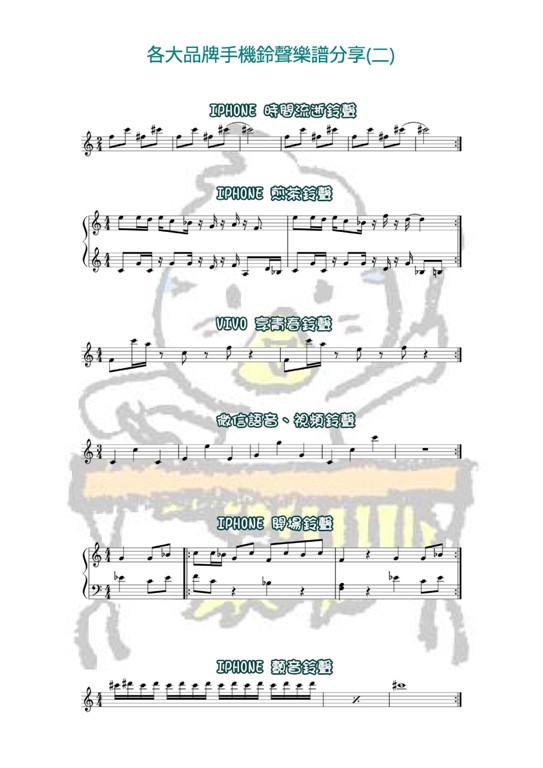 一般而言,老師們都會透過『視唱聽寫』的方式,來演奏樂譜,所以簡單的旋律,通常都可以透過聆聽、再撰寫成樂譜的方式,來完成精確的演奏,您不妨也打開手機鈴聲,反覆聆聽後,嘗試演奏看看。